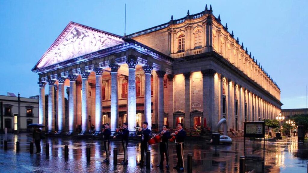 Este emblemático recinto es considerado uno de los mejores conservados de Hispanoamérica de estilo neoclásico. La fachada cuenta con mural en alto relieve dedicado a “Apolo y las Musas” en mármol travertino, obra del escultor Benito Castañeda. Hoy en día, el Teatro Degollado representa el centro artístico de la ciudad donde se reúnen las actividades y artistas tanto de música, ópera, teatro, danza, además de ser sede de la Orquesta Filarmónica de Jalisco.