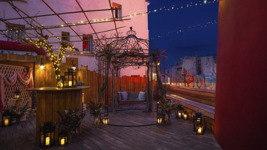 El interior del molino se ha transformado en un tocador inspirado en la Belle Époque, que recuerda la época del cabaret. Los huéspedes podrán echar un vistazo detrás de las cortinas de terciopelo del legendario lugar, incluyendo el acceso a los bastidores del teatro, una comida tradicional francesa de tres platos, los mejores asientos durante el aclamado espectáculo Féerie del Moulin Rouge y una estancia de una noche en el interior del icónico molino de viento, todo ello por sólo 1 euro la noche.