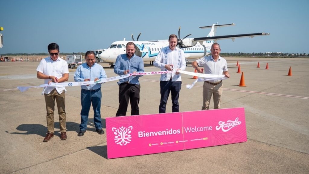 En el corte de listón del vuelo Puebla-Acapulco estuvieron representantes de la asociación de hoteles y empresas turísticas de Acapulco, autoridades del aeropuerto, Daniel Martínez de Pinillos, director operativo de Fidetur y Juan Rossello.