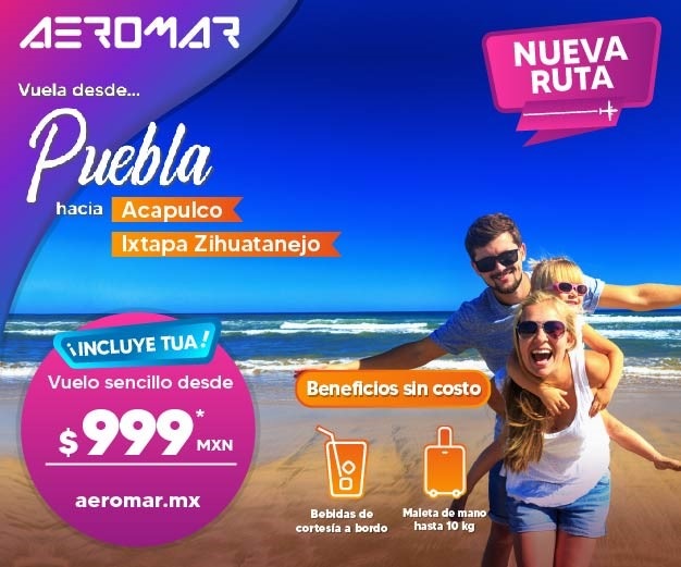 Aeromar refuerza su compromiso de conectar a México y unir historias con dos nuevas rutas: Ixtapa Zihuatanejo–Puebla y Acapulco-Puebla, teniendo como propósito facilitar la transportación a las personas que viven en ciudad de Puebla y sus alrededores hacia las hermosas playas del pacífico mexicano y viceversa.