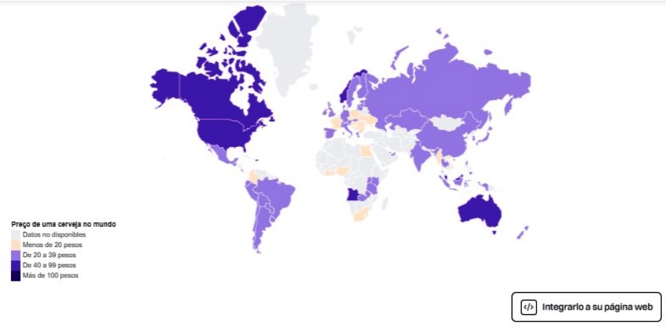 Los precios que se muestran en el mapa consideran el valor promedio de una botella de Heineken de 330 ml en supermercados locales o tiendas donde se permite la venta de alcohol en 81 países del mundo. No se consideran precios en bares, hoteles y restaurantes. Los valores fueron convertidos del dólar, en noviembre de 2022.