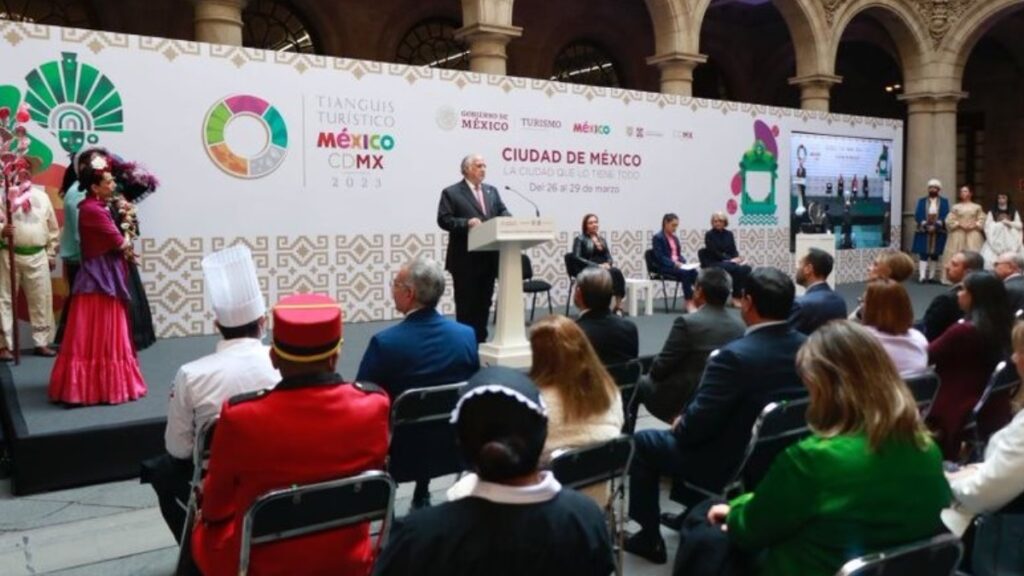 El secretario de Turismo, Miguel Torruco, y la jefa de Gobierno de la Ciudad de México, Claudia Sheinbaum, dieron a conocer que el Tianguis Turístico México 2023, que se realizará por primera vez en la capital del país del 26 al 29 de marzo, reporta mil 113 compradores nacionales e internacionales de 685 empresas, provenientes de 55 países de los 5 continentes, incluido México.