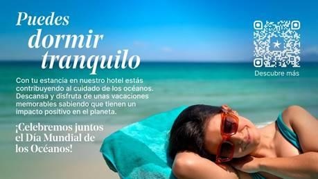 La campaña, que coincide con la celebración del Día Mundial de los Océanos el 8 de junio, apela al sentimiento de tranquilidad por elegir unas vacaciones sostenibles en un hotel Iberostar, ya que, con su estancia, el cliente reduce de media las emisiones de CO2 en un 6% y evita 1.9 kilos de plásticos de un solo uso, como parte del firme compromiso del grupo hotelero mallorquín con el cuidado del océano y de la salud costera.