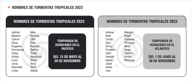 La temporada de huracanes 2023 se estima dure del 15 de mayo al 30 de noviembre, comenzando en el Pacífico Oriental y el primero de junio en el océano Atlántico.