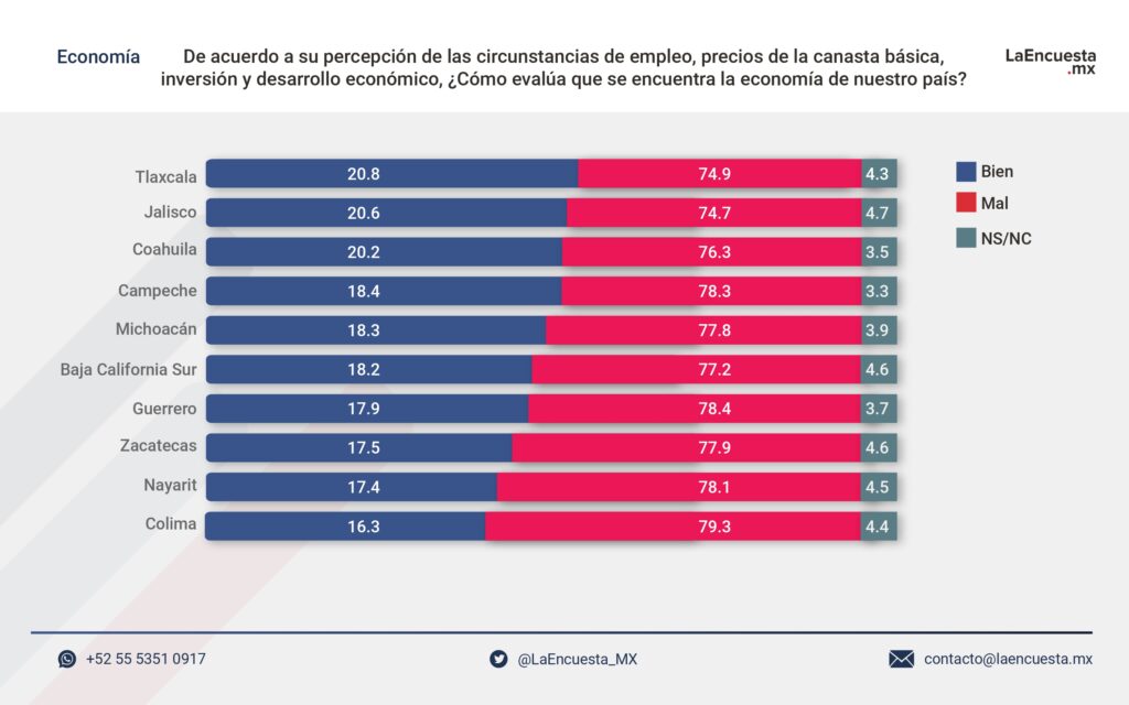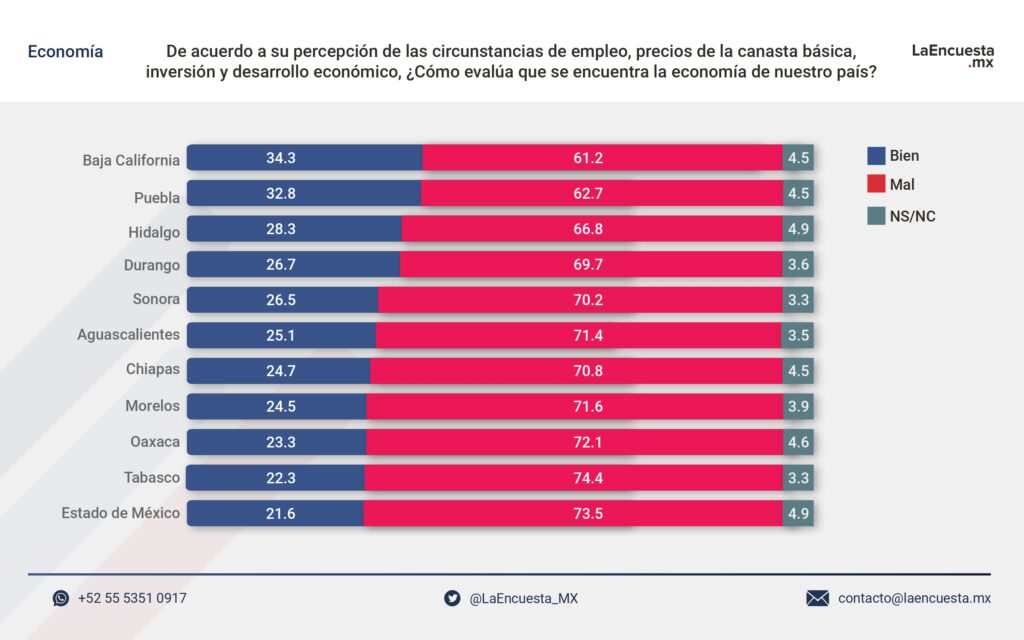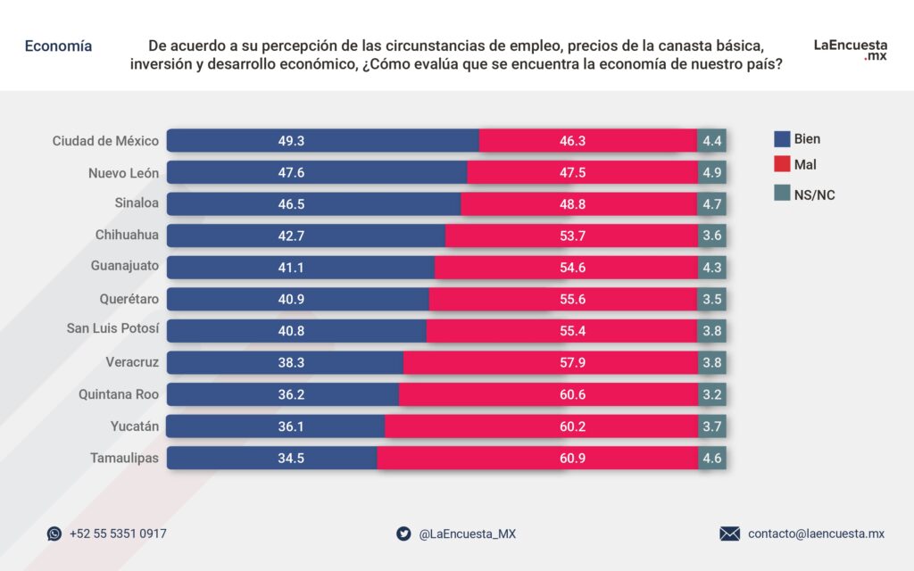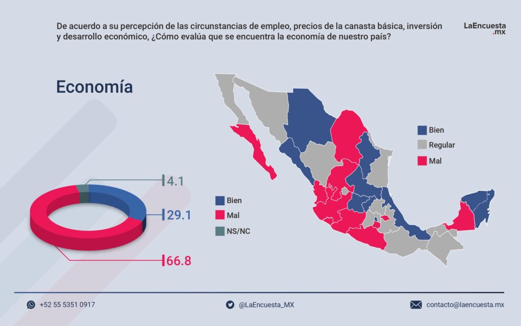 Te compartimos los resultados de nuestra encuesta más reciente para conocer la percepción de los habitantes de México en cuanto a economía, seguridad, salud y democracia en el país.