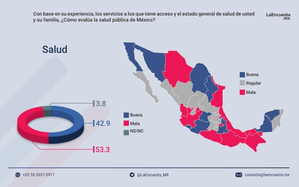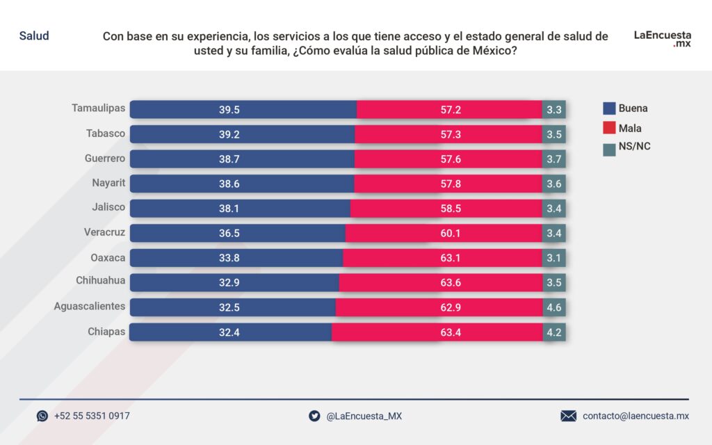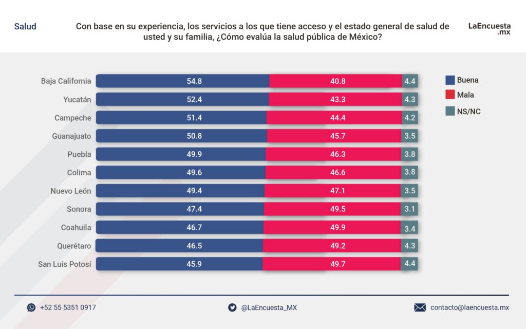 El estado con mejor calificación en cuanto a salud en el país es Baja California con el 54.8% y el último lugar es para Chiapas con el 32.4%