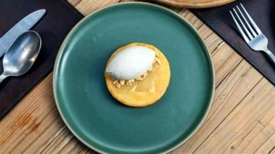 El restaurante, ubicado dentro del proyecto vinícola Bruma, es el taller pastelero de Aldaco, quien también fue nombrada Mejor Repostera de América Latina 2023. Su semifredo de miel con helado de leche, hojuelas de maíz azul y caramelo crujiente es prueba de su talento.