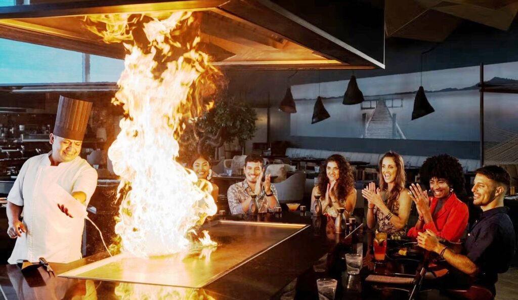 Quienes cenen en Noriku deben estar preparados para sorprenderse, no solo por el diseño del restaurante y los sabores de los platillos, sino también por la experiencia que ofrece con sus mesas Teppanyaki. Con familia o desconocidos, aquí se puede disfrutar de un menú establecido que los chefs preparan desde cero, entre altas y ocasionales llamas.