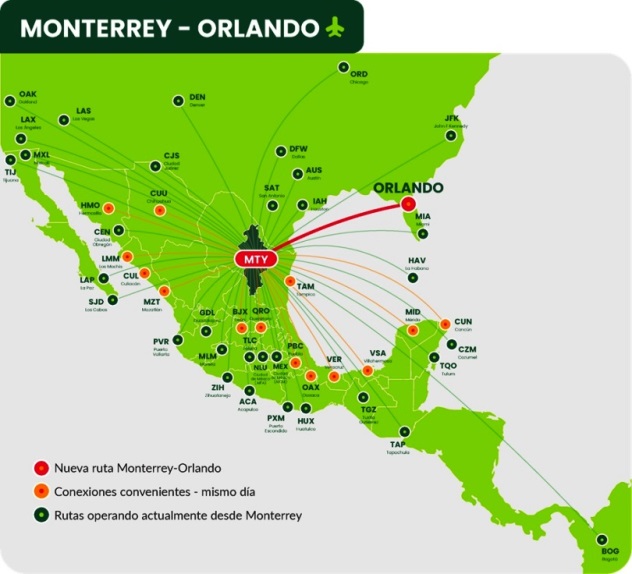 “El lanzamiento del vuelo directo de Viva Aerobus a Orlando marca un hito en el turismo de Nuevo León. Esta nueva conexión ofrece a los viajeros una experiencia conveniente y accesible y fortalece los lazos entre nuestras regiones. Invitamos a los habitantes de Orlando, Florida, a descubrir la riqueza cultural y natural de Nuevo León, mientras nos preparamos para ser anfitriones de la Copa Mundial de la FIFA 2026. Este vuelo representa una puerta abierta hacia nuevas experiencias y la oportunidad de visitar ambos destinos”, afirmó Martínez Villarreal.