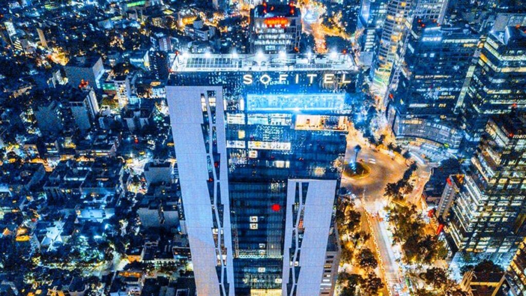 A unos metros del ángel de la Independencia, en Paseo de la Reforma, se encuentra uno de los edificios más altos de la capital: se trata del hotel Sofitel México City Reforma, que cuenta con 40 pisos y una arquitectura y decoración al estilo francés.