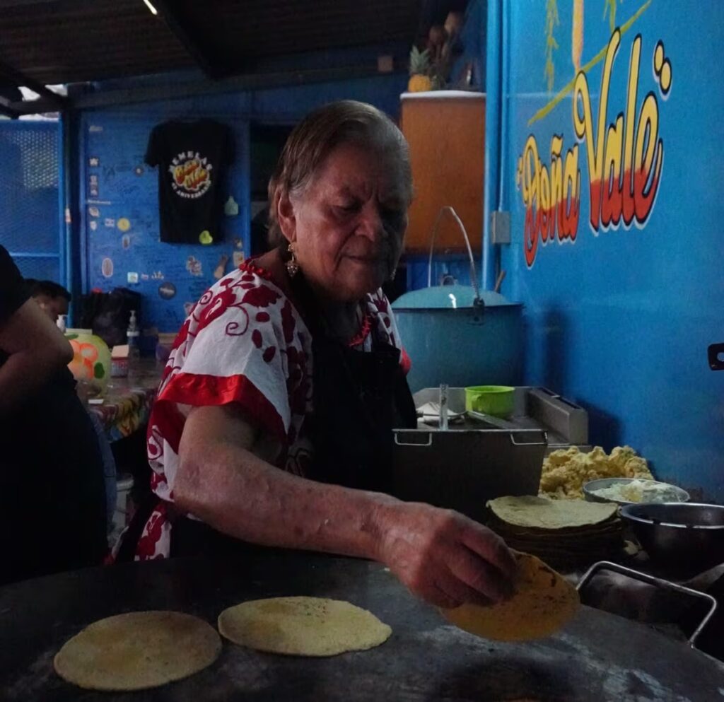 Lo que parece un platillo sencillo, similar a un sope o un taco, se convierte en todo un ícono de la culinaria de Oaxaca, debido al sazón de una de las maestras de las memelas, Doña Vale, que en una breve entrevista, contó cómo convive con todo el cariño y popularidad que ha recibido su negocio.