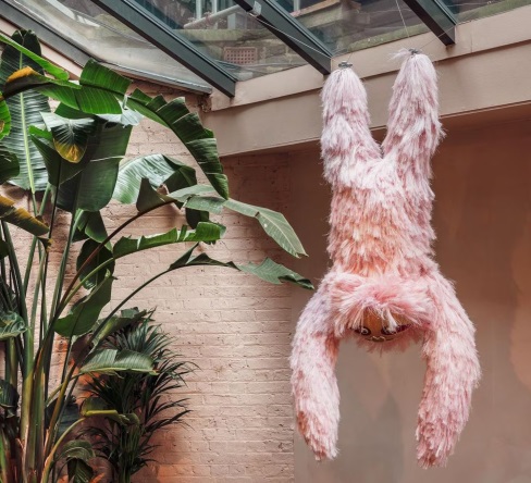 Pero la decoración que anima la sala es un perezoso rosa de tamaño monstruoso suspendido sobre las escaleras. Lastra lo ha bautizado con el nombre de Pancho y no se puede salir del restaurante sin hacerse una foto debajo de él.