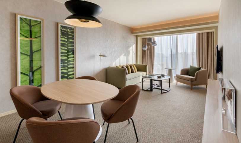 SOUMA Hotel Lima agasaja a sus huéspedes con una experiencia irrepetible que procura elevar los sentidos a través de texturas, aromas, sabores y espacios únicos. La decoración moderna y minimalista del hotel -inspirada en la Reserva Nacional Pacaya Samiria, un área natural protegida del Perú- se acentúa con materiales naturales que crean un oasis armonioso en medio de la ciudad. Sus 214 habitaciones están libres de plástico de un solo uso y han sido cuidadosamente diseñadas para evocar sentimientos de tranquilidad a través de acentos de madera clara, algodón, lino y con ventanales de piso a techo que permiten la entrada de luz natural.