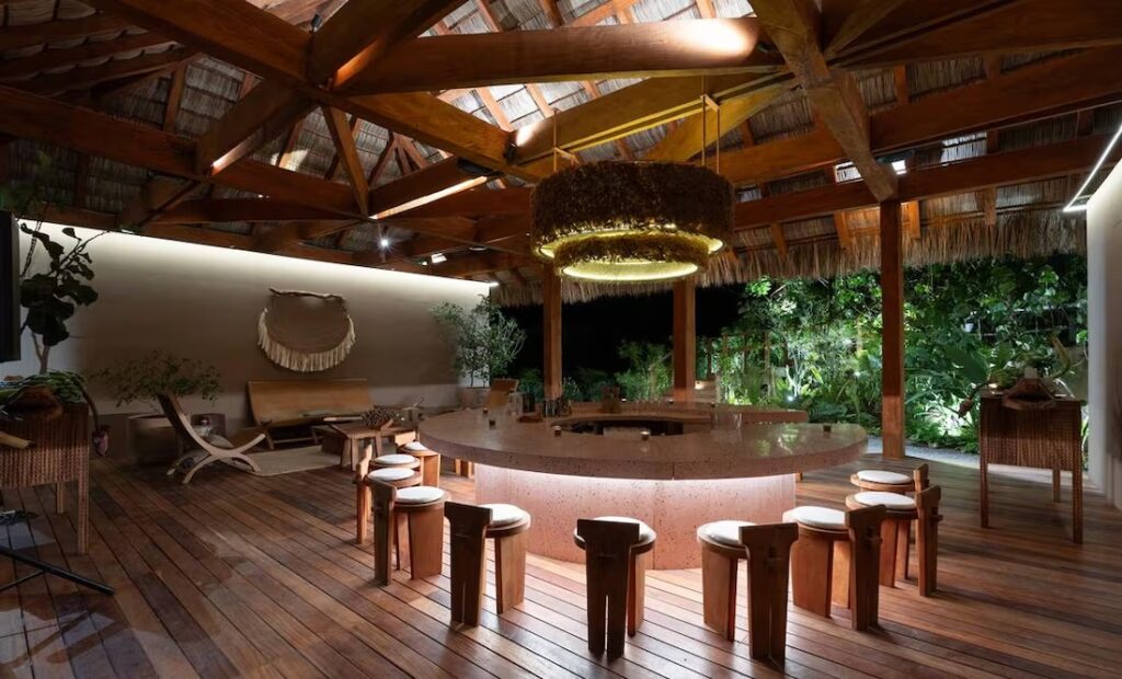En cuanto a su decoración, hay taburetes cuidadosamente elaborados por el diseñador Raúl Cabra alrededor de la barra. Él mismo curó el espacio con elementos compostables y derivados de la naturaleza.