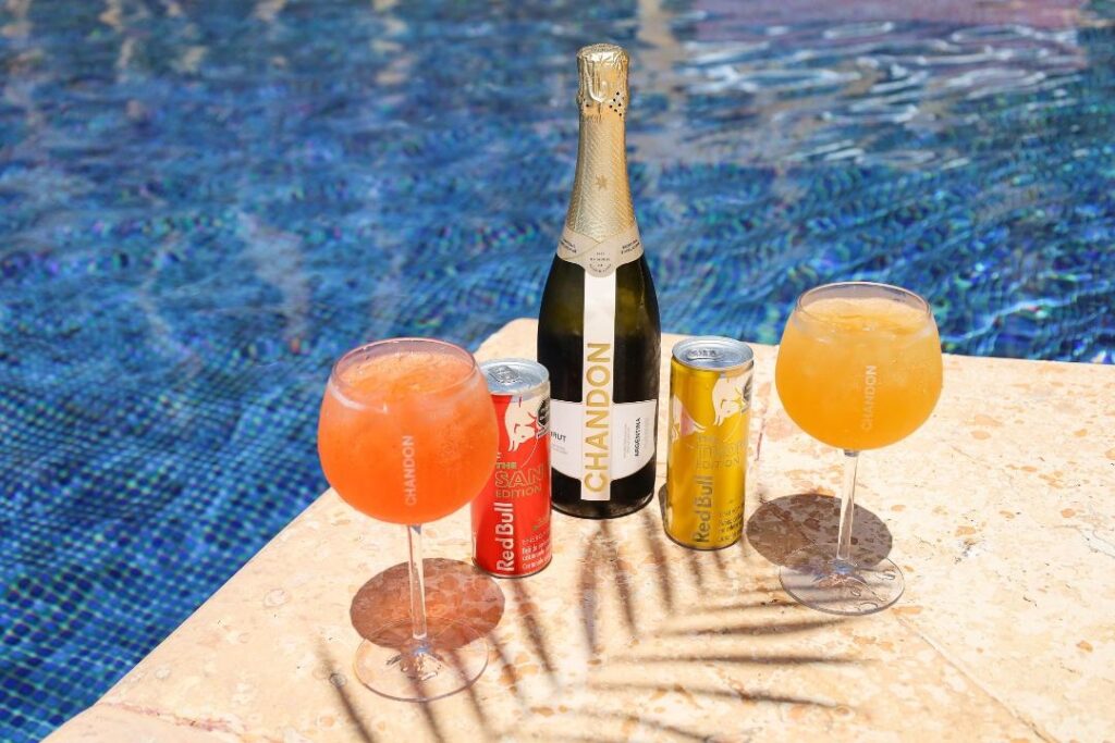 - Coctelería signature: Disponible en todos los restaurantes y bares del mejor hotel gastronómico de Cancún durante el verano, elaborada con Red Bull Sandía y Tropical Edition, combinados con espumosos Chandon Brut y Garden Spritz. Notas cítricas, burbujas doradas y un toque de energía redefinen el brindis en el hotel frente al mar más exclusivo de Cancún.