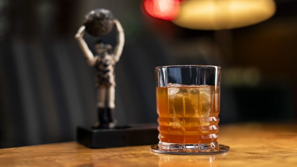 Inspirado en los hombres forzudos del circo, este cóctel clásico con un giro salado y especiado es una exhibición de carácter y fuerza.