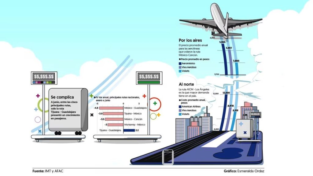 La presencia de aerolíneas de bajo costo, como Viva Aerobus y Volaris, ayudó a que los precios de las empresas tradicionales como Aeroméxico y American, tuvieran mayor competencia, generando una mayor accesibilidad para los viajeros. Sin embargo, los datos de las tarifas promedio de la ruta nacional más popular en México indican que este modelo comenzó a desgastarse.