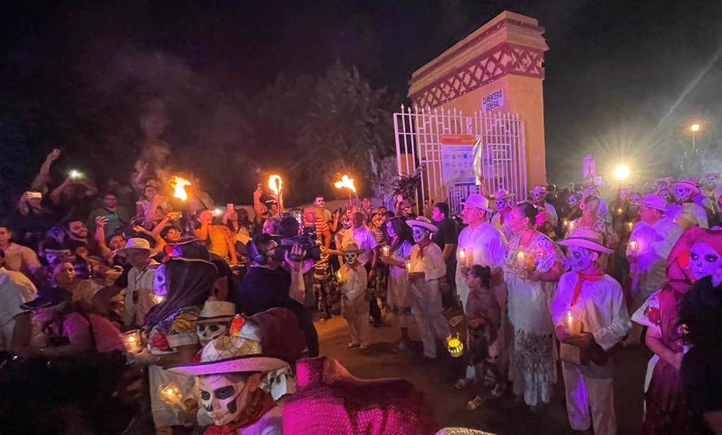 El recorrido —que parte del Cementerio General de Mérida y culmina en el barrio de San Juan— recrea el camino simbólico que las almas transitan para visitar el mundo de los vivos. Durante la procesión, familias yucatecas ataviadas con trajes tradicionales portan velas encendidas, flores y fotografías, acompañadas por música regional, altares y aromas de copal que envuelven el aire.