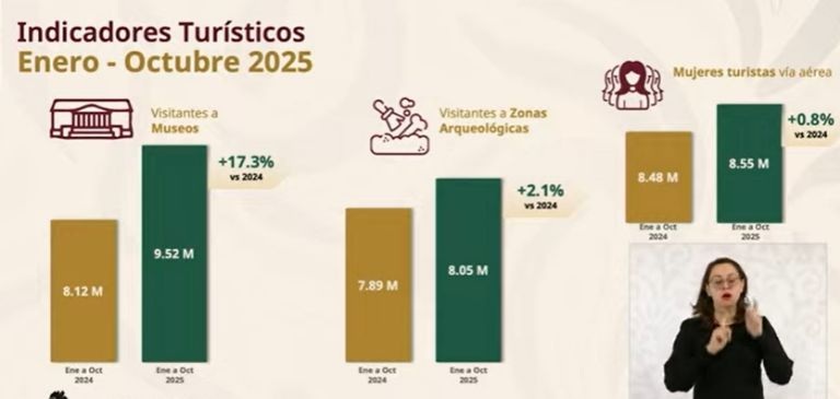 México está de moda, fue el slogan que reiteró la secretaria de Turismo, Josefina Rodríguez, en la Mañanera de este 11 de diciembre. En presencia de la presidenta Claudia Sheinbaum, la funcionaria informó la llegada de visitantes internacionales: 8.3 millones hasta octubre de 2025, un aumento del 10.7 por ciento respecto al mismo periodo del año previo.