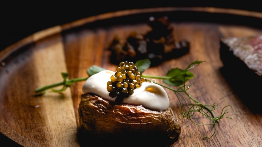 El menú avanza con codornices locales y cierra con un corte de carne sazonado con sal de San Felipe, crema de Rancho Ramonetti y caviar de la región, confirmando que, aunque la inspiración es marina, Amapola reconoce la riqueza integral del Valle.
