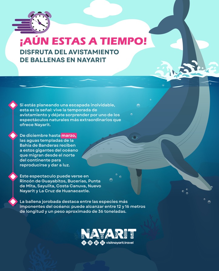 Con todo esto, si estás planeando una escapada inolvidable, esta es la señal: vive la temporada de avistamiento y déjate sorprender por uno de los espectáculos naturales más extraordinarios que ofrece Nayarit.