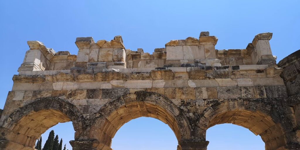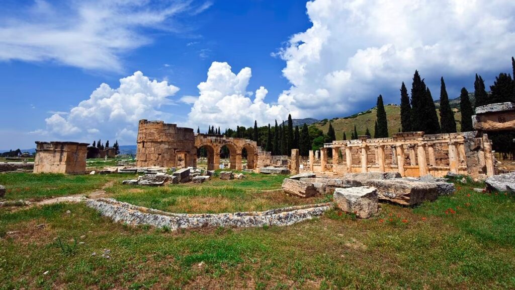 El atractivo de Pamukkale va más allá de su belleza natural; su valor histórico es igualmente fascinante. Justo encima de las terrazas se encuentran las ruinas de Hierápolis, una antigua ciudad grecorromana fundada en el siglo II a.C., famosa por sus templos, su teatro y sus baños termales.