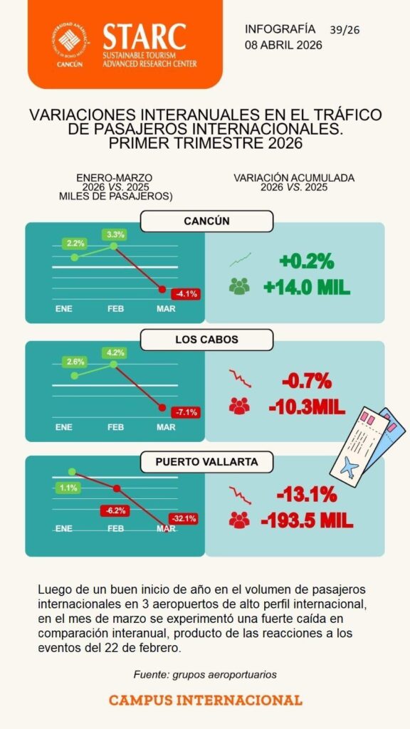 Turismo aéreo de EU al exterior en 1er bimestre 2026